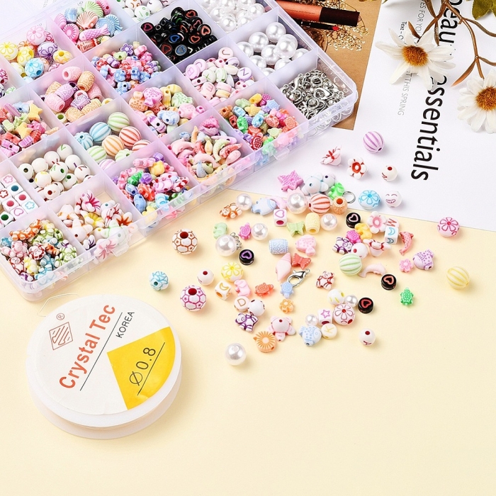 Детский набор для создания браслетов и украшений, акриловые бусины, фурнитура, 800-805шт бусин / набор,