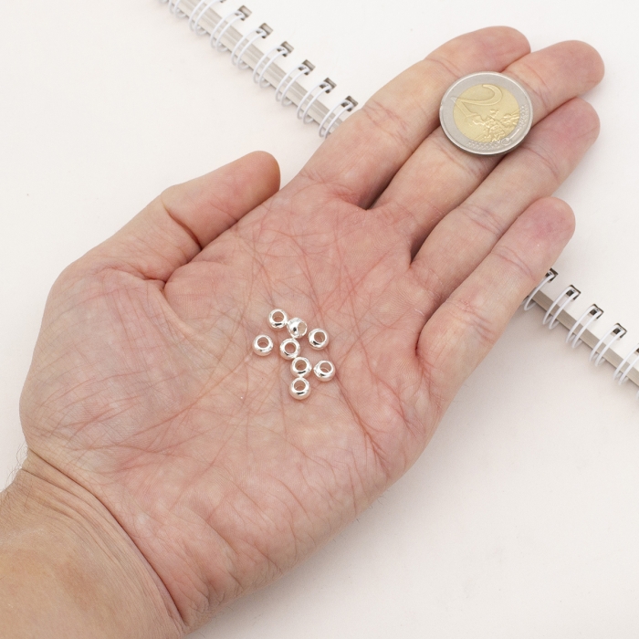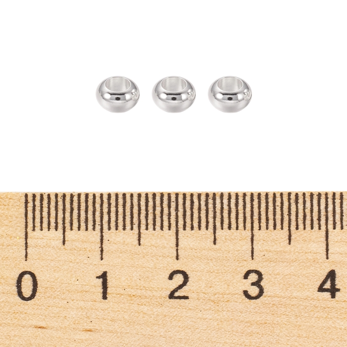 Бусины-Разделители Латунь, Рондель, Цвет: Серебро, Размер: 6х4мм, Отверстие 3мм, (УТ100030620)Упаковка: