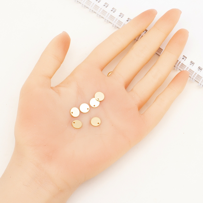 Подвеска Плоская Круглая, Латунь, Стойкое Покрытие, Позолота 18К, 8х1мм, Отверстие 1мм, (УТ100030626)