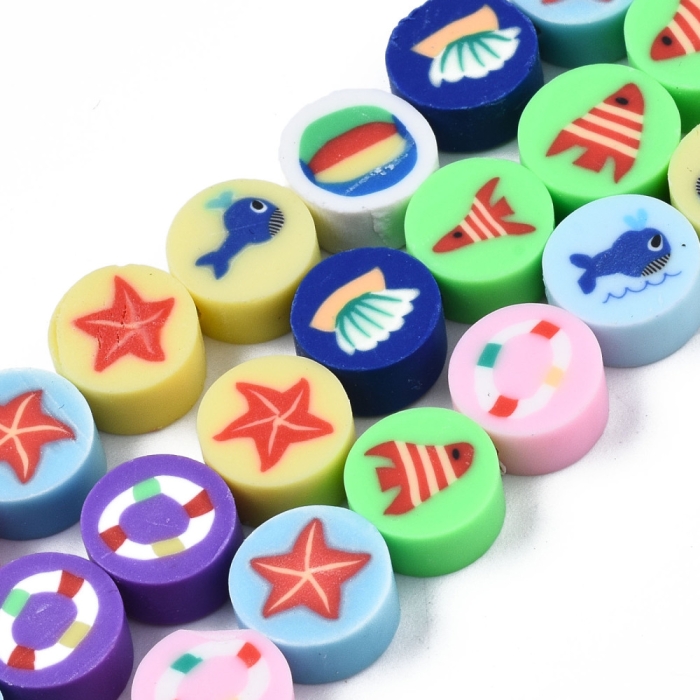 Бусины из Полимерной Глины, Ручная Работа, Круглые Плоские, Цвет: Микс, Размер: 9.5х5мм, Отверстие 1.6мм, около 38шт/35см/нить, (УТ100030725) - ᐈ заказывайте в Москве оптом и в розницу ✅Скидки ✅Акции ✅Распродажи ᐈ доставка по всей России ᐈ Интернет-магазин Мир Бусин