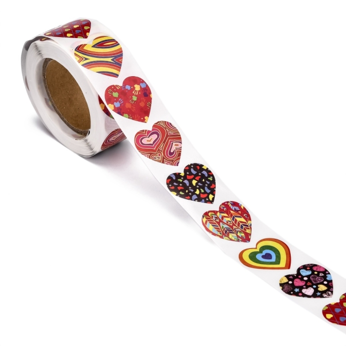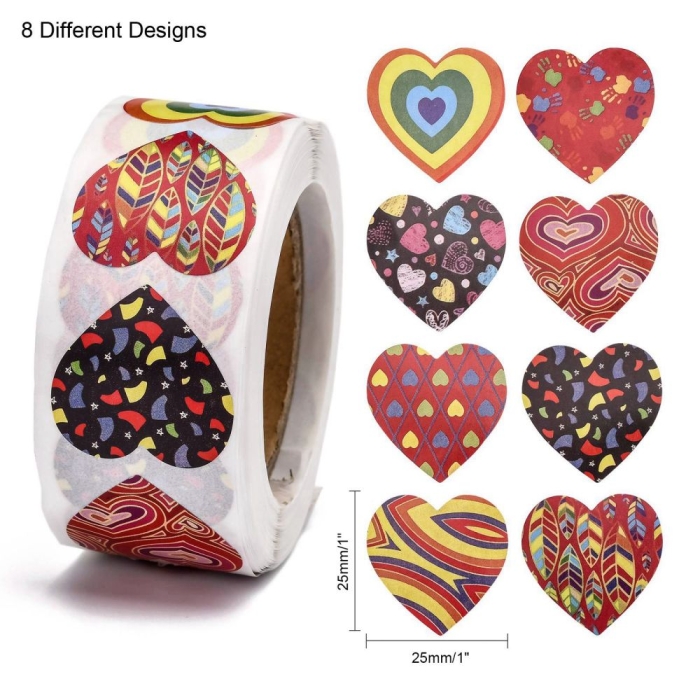 Наклейки-этикетки Самоклеющиеся, Сердце, Микс, 25х25мм, 500шт/катушка, (УТ100030754)