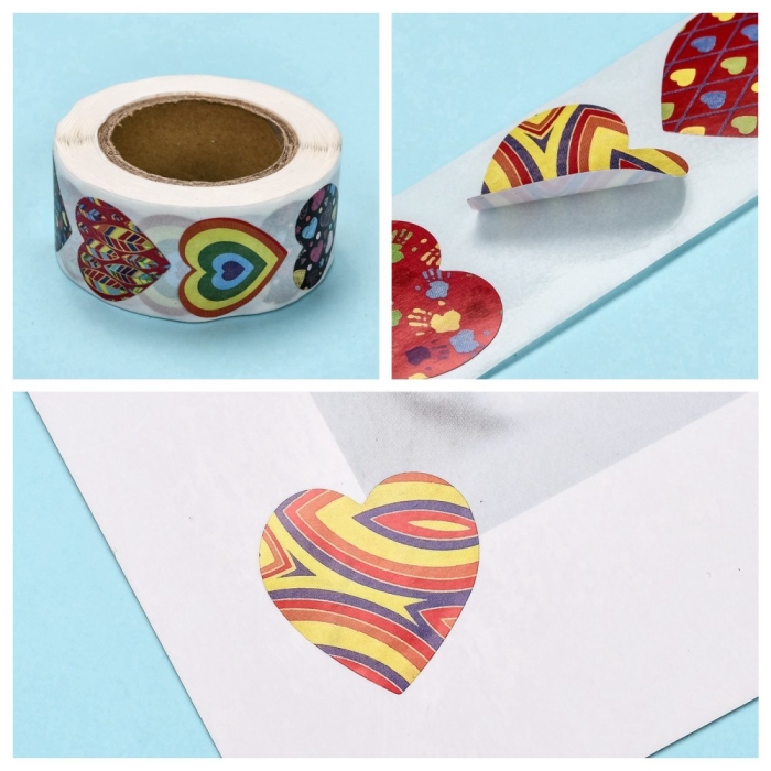 Такие наклейки широко используют для украшения подарков, открыток, упаковки, свадебного и праздничного декора, в частности, на День Святого Валентина. Они придают милый и романтичный акцент любому изделию или оформлению, а также могут служить маркировкой или этикетками для мелких сувениров.