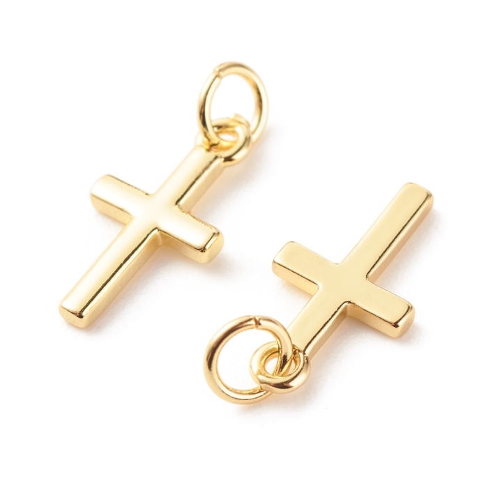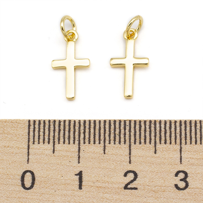 Подвеска Латунь, Крест, Покрытие, Покрытие Золото 18К, Размер: 15х8х1.5мм, Соединительное кольцо 5.1х0.8мм, Внутр диаметр 3.5мм, (УТ100030773) - ᐈ заказывайте в Москве оптом и в розницу ✅Скидки ✅Акции ✅Распродажи ᐈ доставка по всей России ᐈ Интернет-магазин Мир Бусин