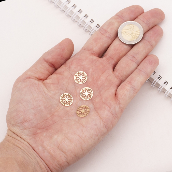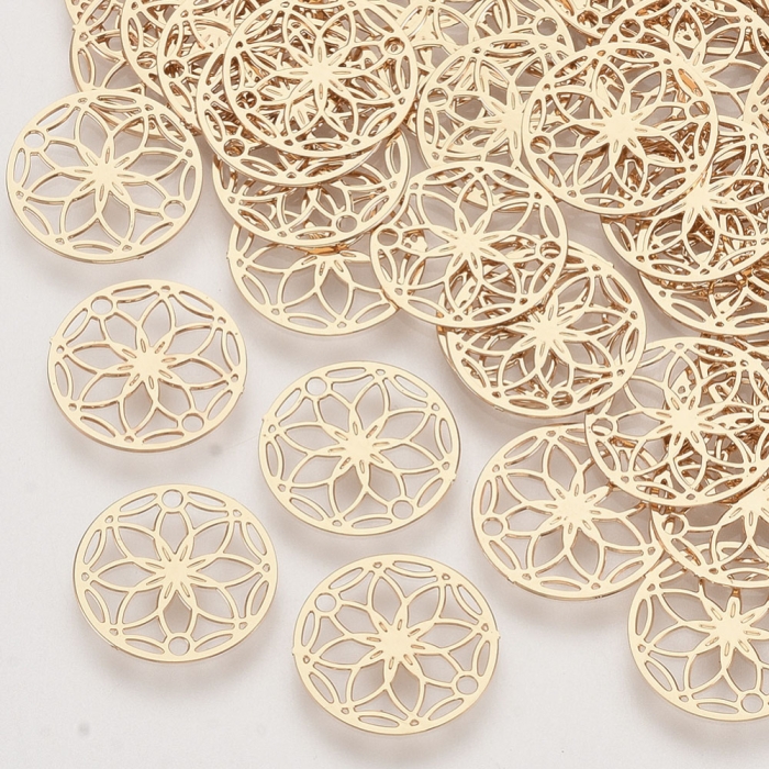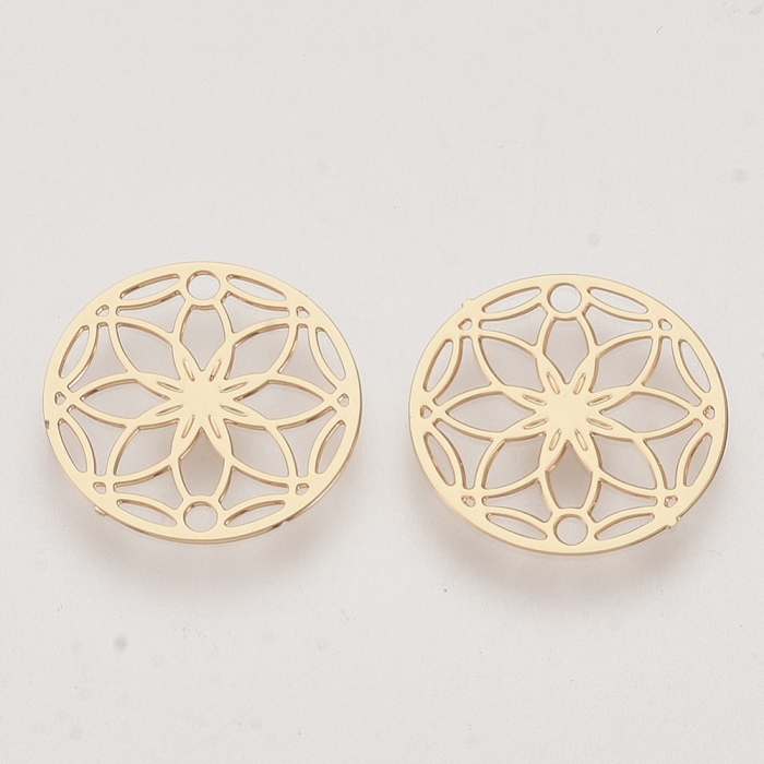 Коннектор Латунь, Гравированные, Цветок Жизни, 2 Отверстия, Стойкое Покрытие, Светлое Золото, Размер: 13х0.3мм, Отверстие 1.2мм, (УТ100030842) - ᐈ заказывайте в Москве оптом и в розницу ✅Скидки ✅Акции ✅Распродажи ᐈ доставка по всей России ᐈ Интернет-магазин Мир Бусин