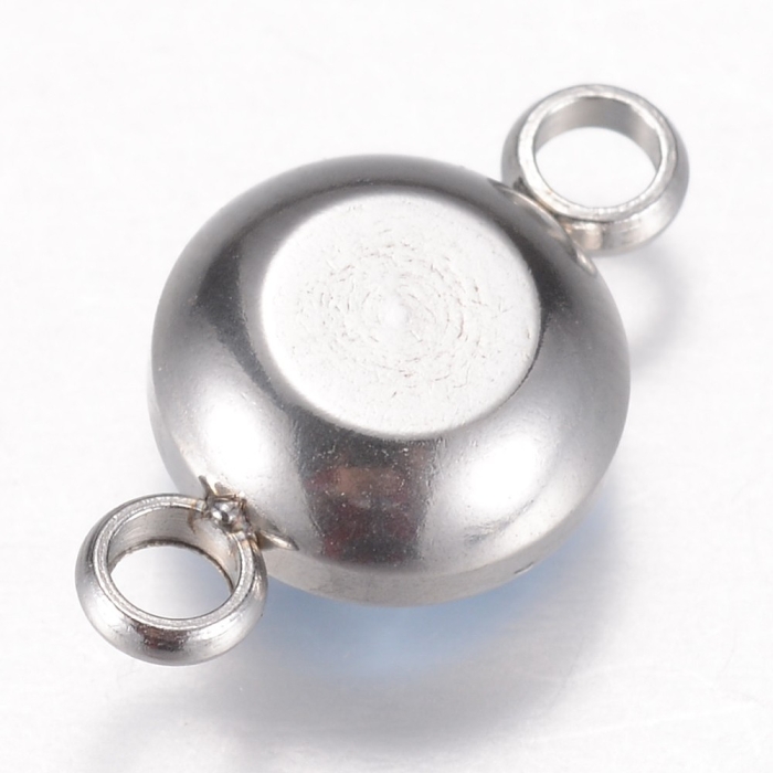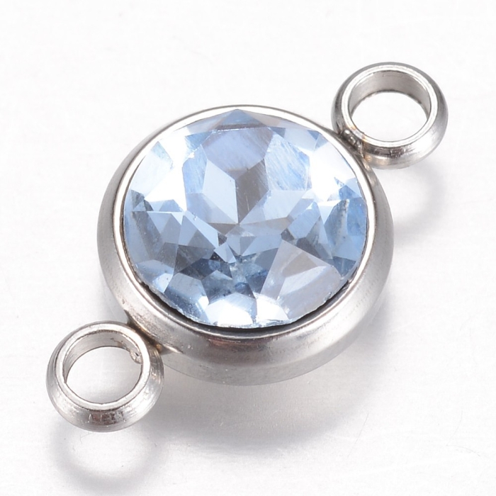 Коннектор 304 Нержавеющая Сталь и Граненое Стекло, Цвет: Светлый Сапфир, Плоский Круглый, 2 отверстия.