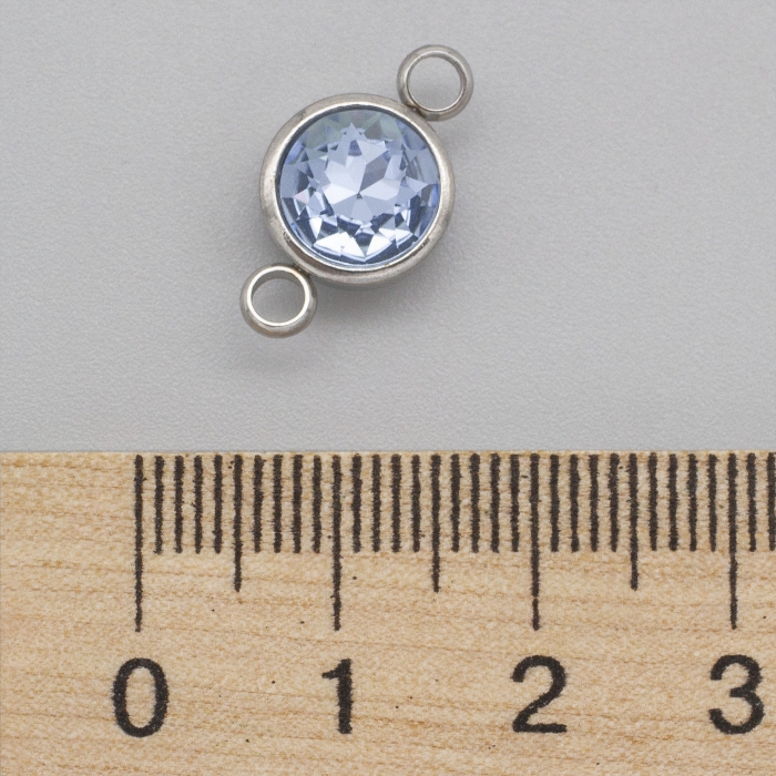 Коннектор Нержавеющая Сталь и граненое Стекло, Плоский Круглый, 2 отверстия, Цвет: Светлый Сапфир, Размер 17.5х10х6.5мм, Отверстие 2.5мм, (УТ100030794)