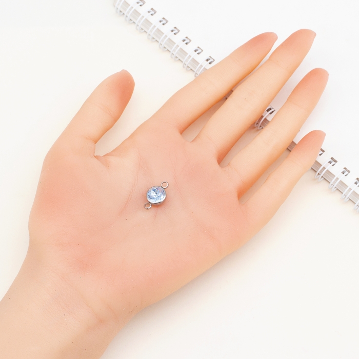 Коннектор из нержавеющей стали с граненным стеклом - это декоративный элемент, сочетающий в себе прочность нержавеющей стали и элегантность граненого стекла. Такие коннекторы обеспечивают прочное и стильное соединение в ювелирных изделиях, браслетах, ожерельях и других рукодельных проектах.