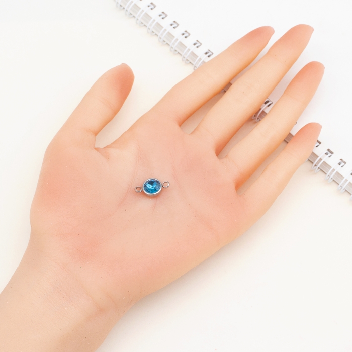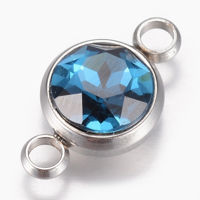 Коннектор 304 Нержавеющая Сталь и Граненое Стекло, Цвет: Синий Циркон, Плоский Круглый, 2 отверстия.