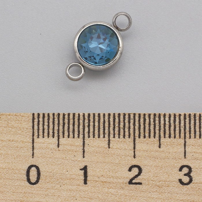 Коннектор Нержавеющая Сталь и граненое Стекло, Плоский Круглый, 2 отверстия, Цвет: Синий Циркон, Размер 17.5х10х6.5мм, Отверстие 2.5мм, (УТ100030797) - ᐈ заказывайте в Москве оптом и в розницу ✅Скидки ✅Акции ✅Распродажи ᐈ доставка по всей России ᐈ Интернет-магазин Мир Бусин