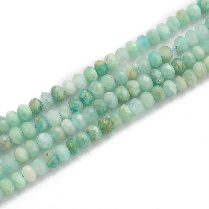 Бусины Натуральный Амазонит, На нитях, Граненые, Рондель, Размер: 3х2мм, Отверстие 0.8мм, около 155шт/37.5см/нить, (УТ100031055)