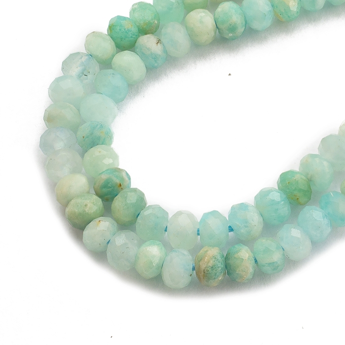 Бусины Натуральный Амазонит, На нитях, Рондель, Граненые,