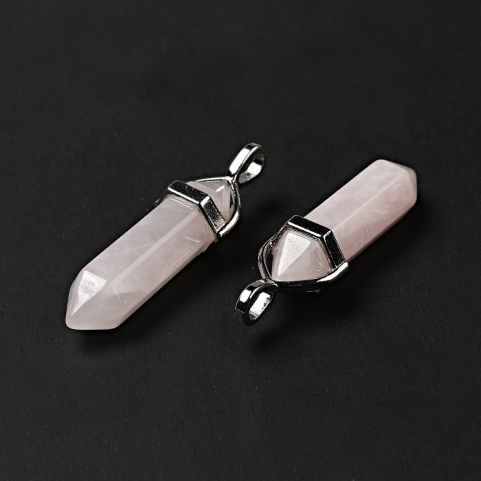 Кулон из Натурального Розового Кварца, Шестигранный, с Фурнитурой из Сплава,