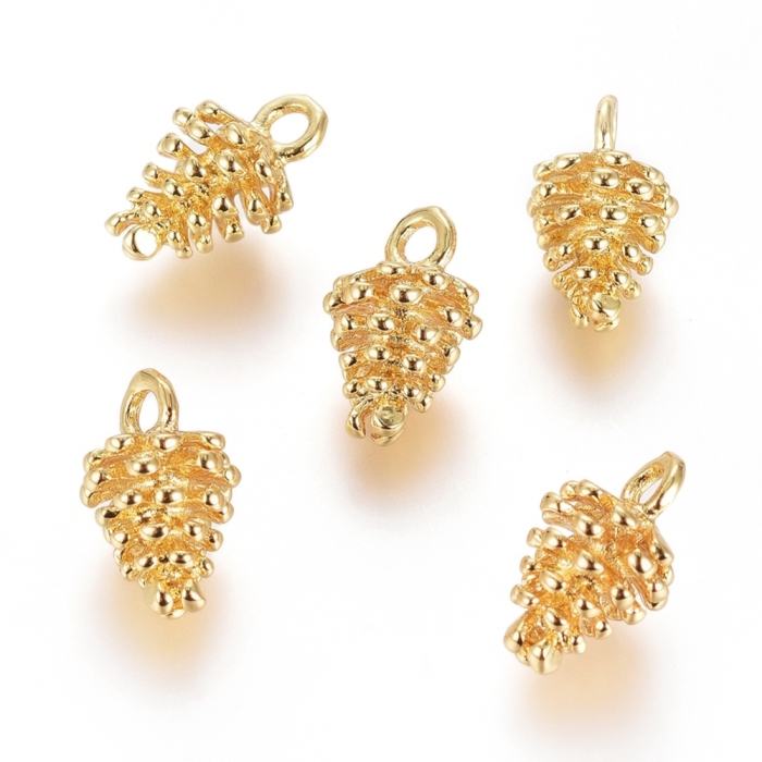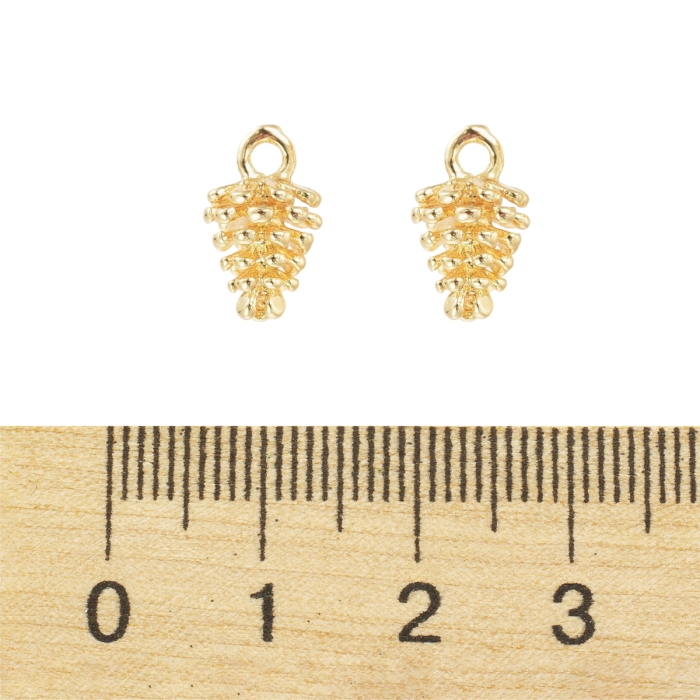 Подвеска Латунь, Шишка, Стойкое Покрытие Золото 18К, Размер: 12.5х8мм, Отверстие 1.8мм, (УТ100031306)