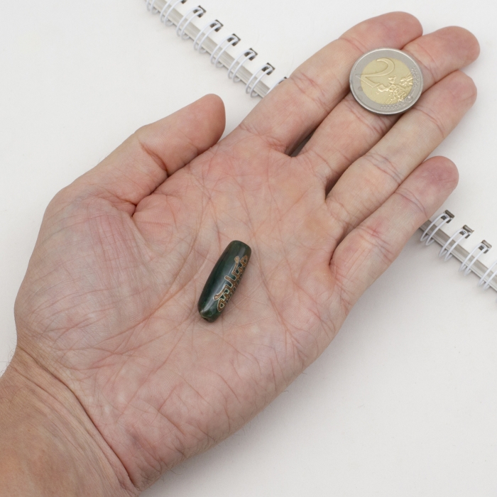 Бусины изготовлены из натурального агата и стилизованы под традиционные тибетские dZi. Благодаря тонированию и нагреву на поверхности создан четкий орнамент «Двойное долголетие», символизирующий здоровье, долгую жизнь и духовную защиту. Овальная форма делает бусины удобными для использования в украшениях, придавая изделиям гармоничности и этнического характера.