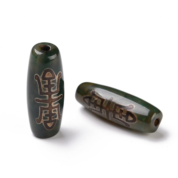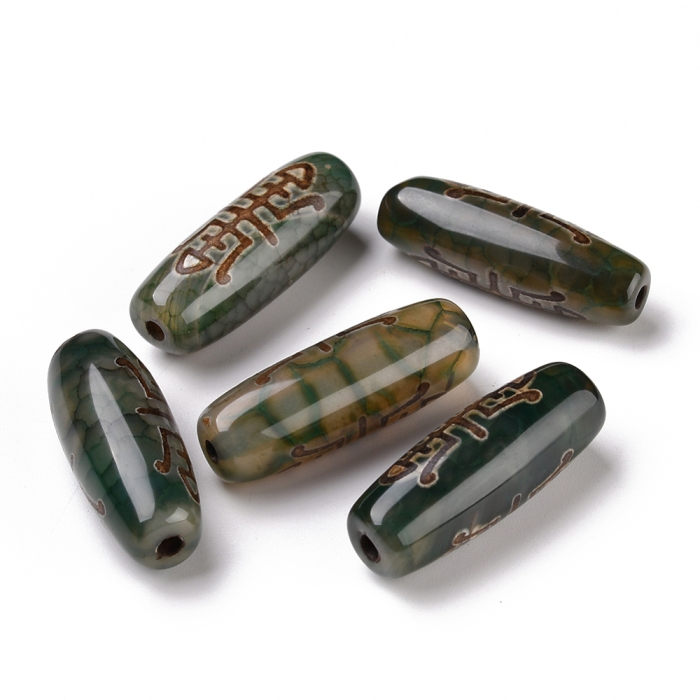 Бусины Дзи из Натурального Тибетского Агата, Двойное Долголетие, Овальные, Термоокрашенные.
