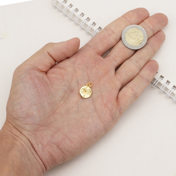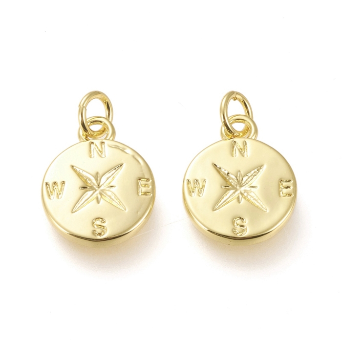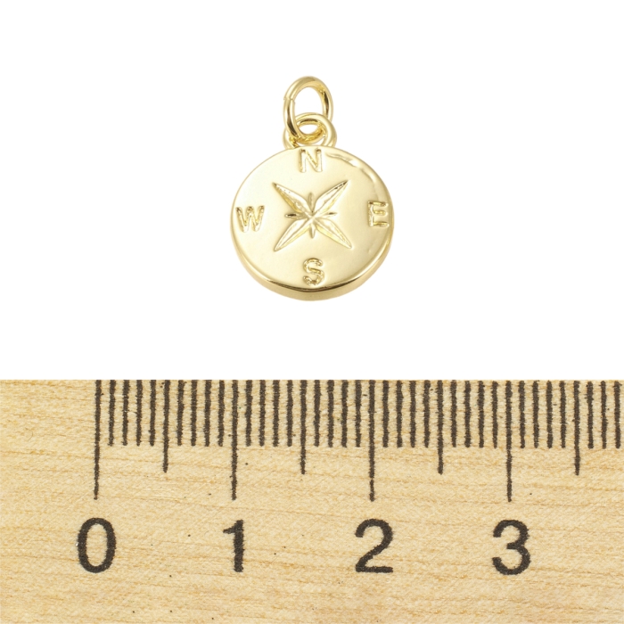 Кулон Компас, Латунь, Плоский Круглый, Стойкое Покрытие Золото 18К, Размер: 15.2х12х2мм, Отверстие 3мм, Соединительное кольцо 5х1мм, (УТ100031324)