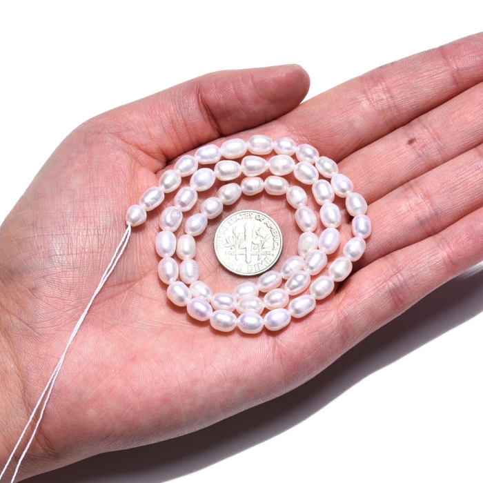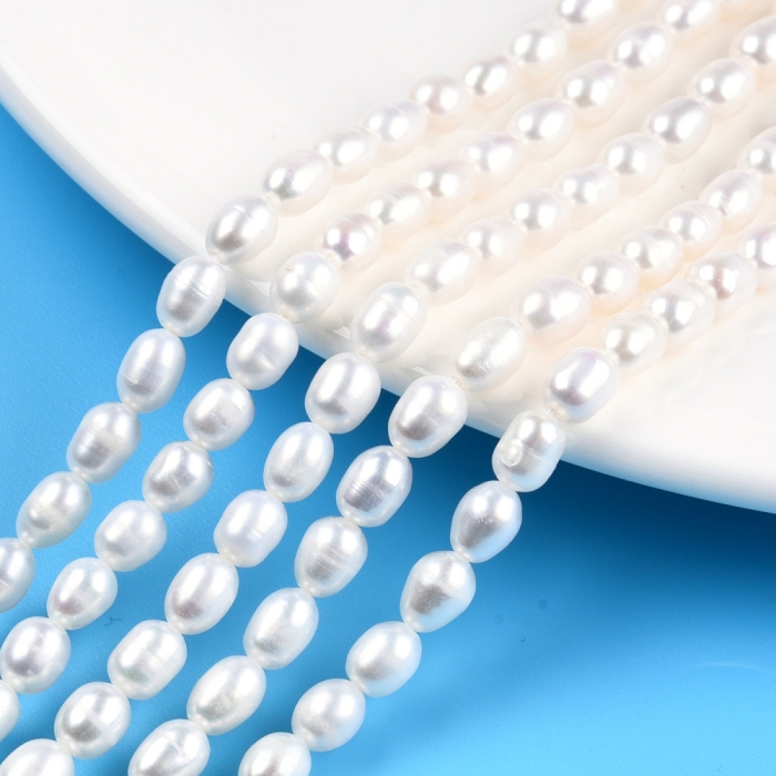 Натуральный Пресноводный Жемчуг, Рис, Цвет: Белый, Размер: 6-7х5мм, Отверстие 0.7мм, около 50-52шт/30см/нить (УТ100031375) - ᐈ заказывайте в Москве оптом и в розницу ✅Скидки ✅Акции ✅Распродажи ᐈ доставка по всей России ᐈ Интернет-магазин Мир Бусин