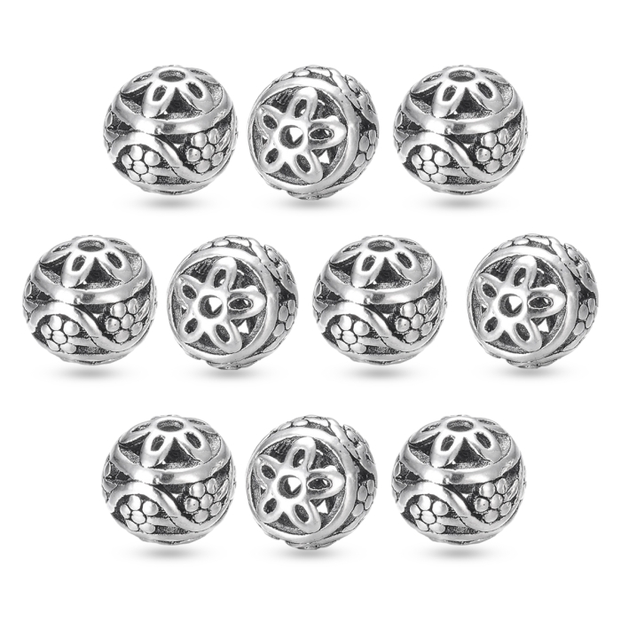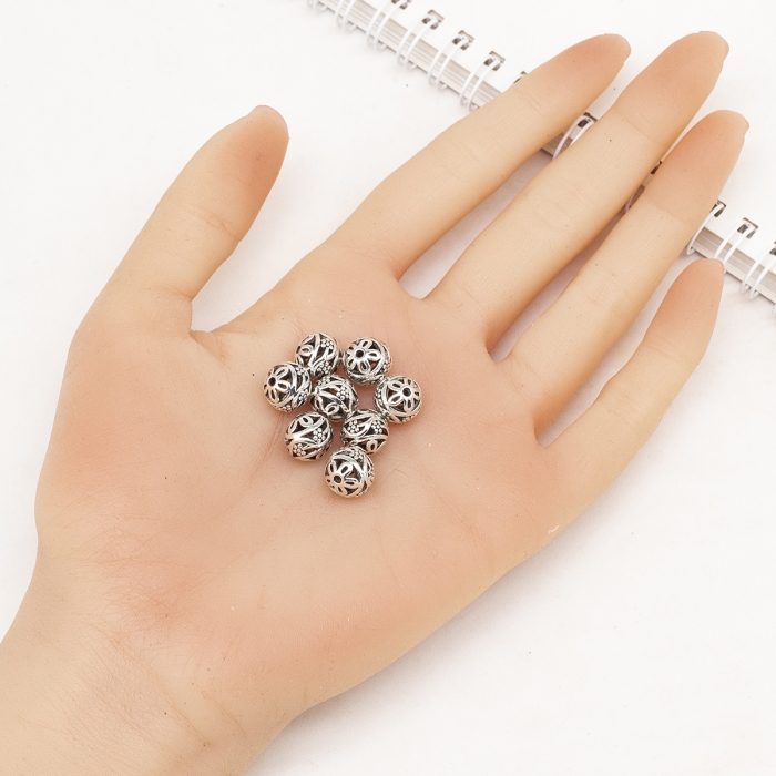 Бижутерный сплав, из которого изготовлены бусины, устойчив к потускнению и долговечен. Такие бусины экологичны и не вызывают аллергии, что позволяет носить их даже людям с чувствительной кожей. Полые бусины из бижутерного сплава отлично сочетаются с другими материалами, такими как натуральные камни, кожа и текстильные элементы, добавляя украшениям текстуру и объем. Эти бусины прекрасно подходят для создания аксессуаров в классическом, этническом и современном стилях, добавляя изделию легкость и стильную завершенность.