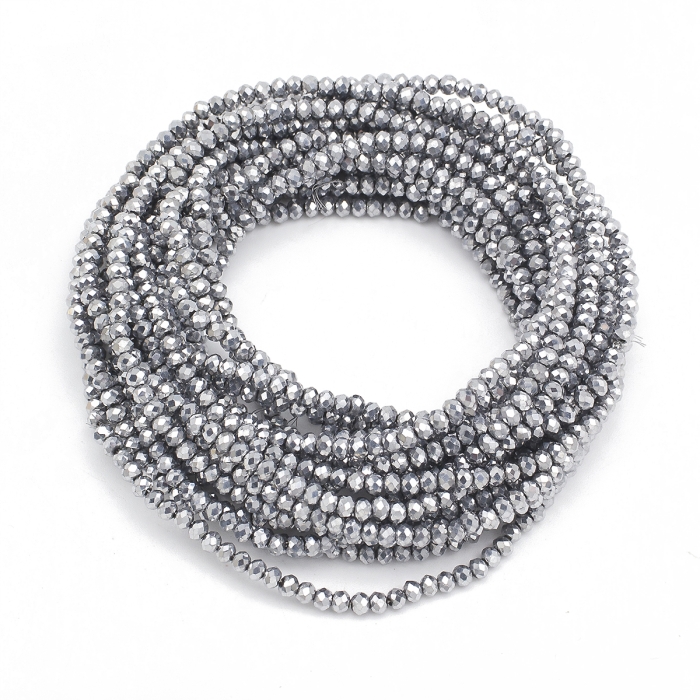 Бусины Гальваника Стеклянные Платинове Покрытие Граненые Рондель, 3х2мм, Отверстие 0.8мм, около 137шт/32см/нить, 10нитей/упак, (УТ100032126)