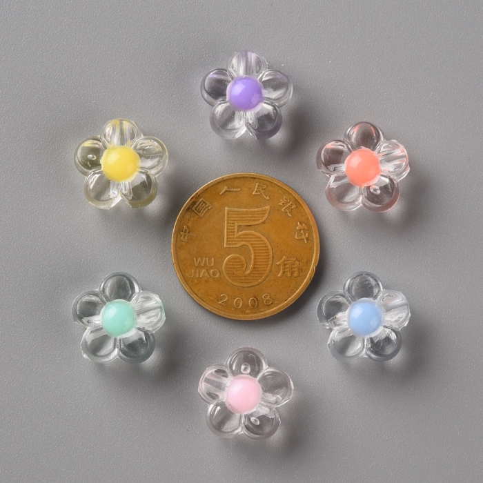 Бусины Акриловые Цветок Прозрачные, Микс, 12х12.5х6мм, Отверстие 2.5мм, около 85шт/50г, (УТ100032314)