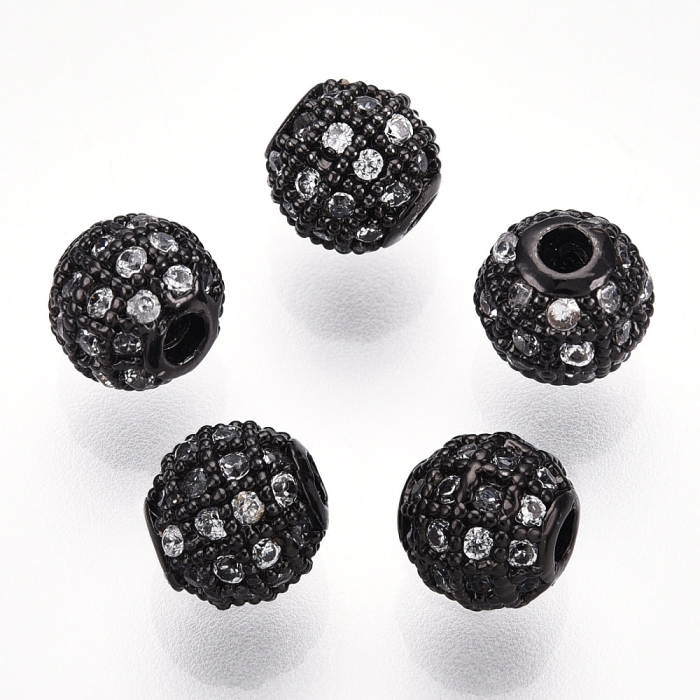 Бусины из Латуни с Фианитами, Круглые, Стойкое Покрытие,
