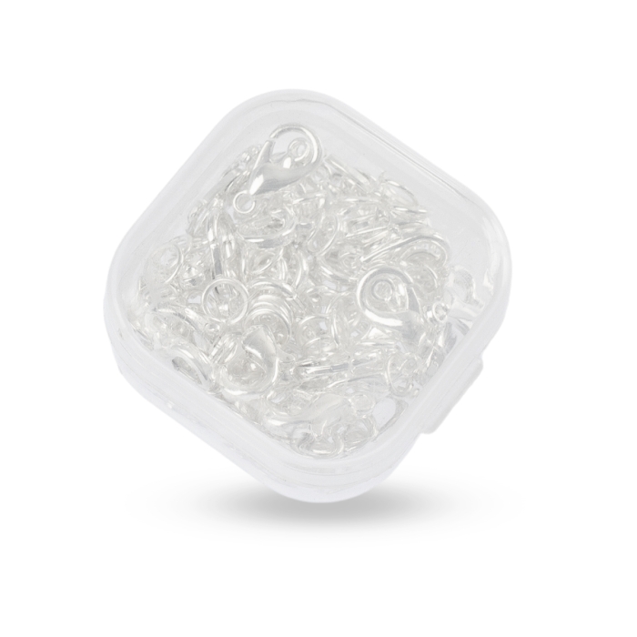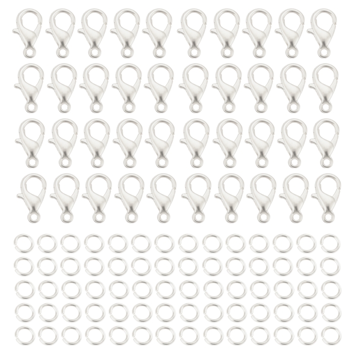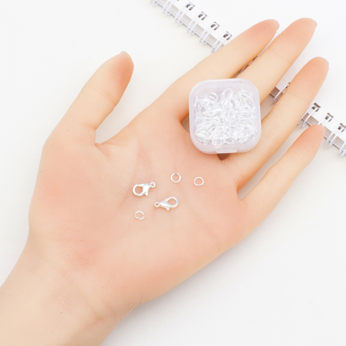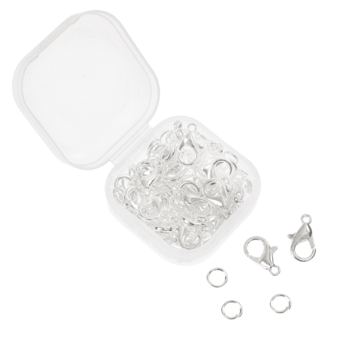 Набор содержит 120 шт. основная фурнитура для создания украшений: карабины-лобстеры из бижутерного сплава и соединительные кольца из прочного железа. Все элементы собраны в удобном прозрачном пластиковом контейнере, что обеспечивает легкость хранения и быстрый доступ к нужной детали.