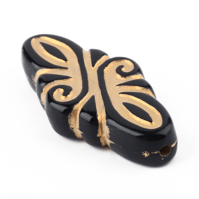 Бусины Акриловые "Париж" Ромб, с Рисунком Металлик Золото, Цвет: Черный, Размер: 30x14x5.5мм, Отверстие 1мм, (УТ100014392) - ᐈ заказывайте в Москве оптом и в розницу ✅Скидки ✅Акции ✅Распродажи ᐈ доставка по всей России ᐈ Интернет-магазин Мир Бусин