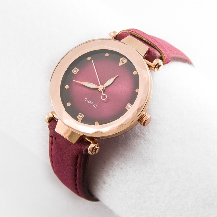 Часы Женские Кварцевые, со Стразами, Цвет: Вишневый, Размер: 33мм, Ремешок Кожзам: 24х1.5см, (УТ100016385) - ᐈ заказывайте в Москве оптом и в розницу ✅Скидки ✅Акции ✅Распродажи ᐈ доставка по всей России ᐈ Интернет-магазин Мир Бусин