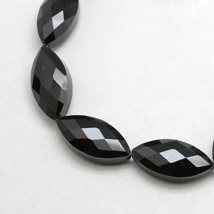 Бусины Стеклянные Непрозрачные, Конский Глаз, Граненый, Цвет: Черный, Размер: 25x12мм, Толщина 8мм, Отв. 1мм, Около 30шт./75см/нить (УТ100019111) - ᐈ заказывайте в Москве оптом и в розницу ✅Скидки ✅Акции ✅Распродажи ᐈ доставка по всей России ᐈ Интернет-магазин Мир Бусин