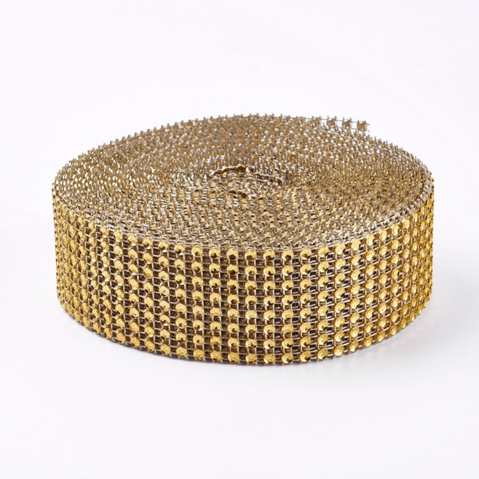 Декоративная Лента под Стразы, Пластик, Рулон 9 метров, Цвет: Золото, Размер: 40х1мм, (УТ100020955)