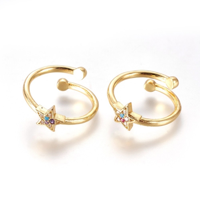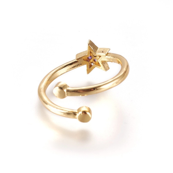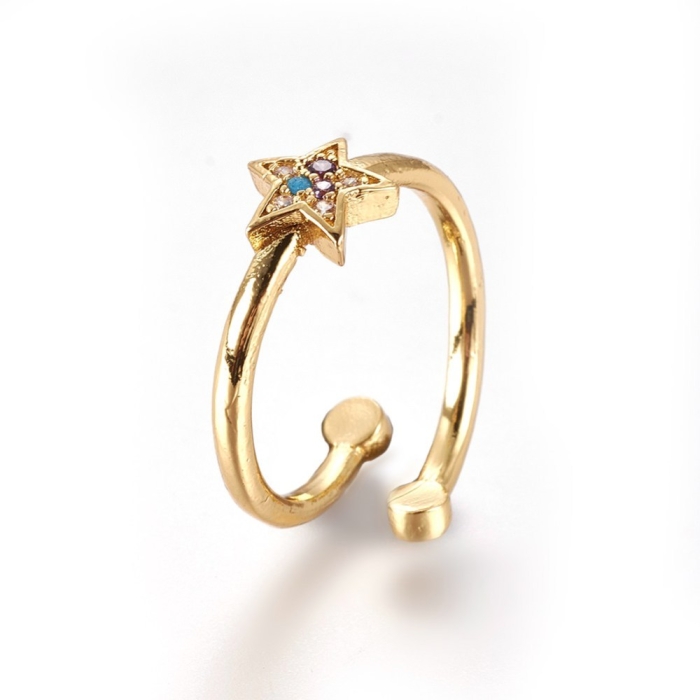 Кольцо Звезда, Регулируемое, Латунь+ Фианиты, Цвет: Золото, Внутренний Диаметр: 16мм, Толщина 2мм, Звезда: 7х7мм.