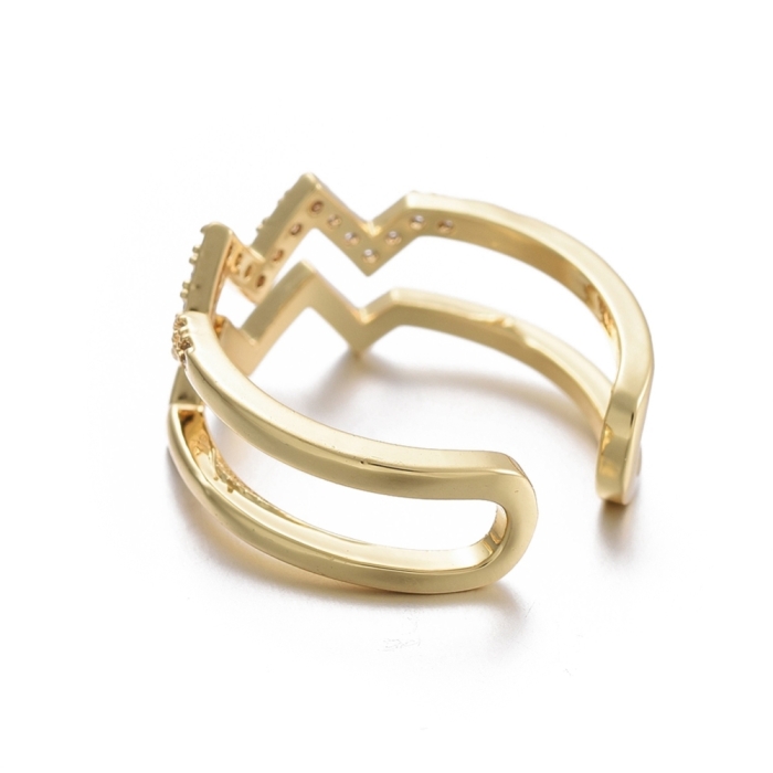 Кольцо Регулируемое Волна, Латунь + Фианиты, Стойкое Покрытие, Прозрачные Камни, Цвет: Золото, Размер 17.5, (УТ100021241) - ᐈ заказывайте в Москве оптом и в розницу ✅Скидки ✅Акции ✅Распродажи ᐈ доставка по всей России ᐈ Интернет-магазин Мир Бусин