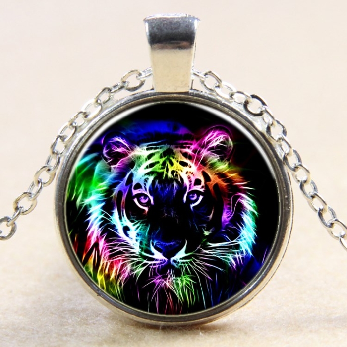Кулон Тигр Круглый на Цепочке, Металл и Стекло, Цвет: Серебро, Цепочка: 45-50см, Кулон: 27мм, (УТ100021754) - ᐈ заказывайте в Москве оптом и в розницу ✅Скидки ✅Акции ✅Распродажи ᐈ доставка по всей России ᐈ Интернет-магазин Мир Бусин