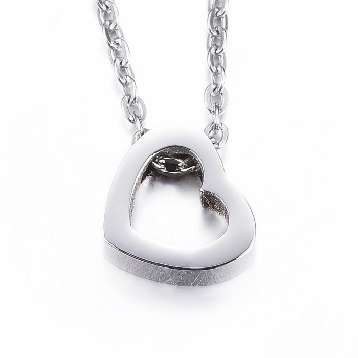 Ожерелье из Нержавеющей Стали, с Кулоном Сердце, Застежка Карабин-лобстер, Размер: Цепь 45см, Кулон: 9x10x3мм, (УТ100022135)