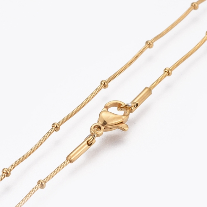 Ожерелье из Нержавеющей Стали, Цепь, Плетение Снейк, с Бусинами и Застежкой Карабин Лобстер, Золото, 45смх1мм, Застежка: 10x6.5мм, (УТ100022136) - ᐈ заказывайте в Москве оптом и в розницу ✅Скидки ✅Акции ✅Распродажи ᐈ доставка по всей России ᐈ Интернет-магазин Мир Бусин