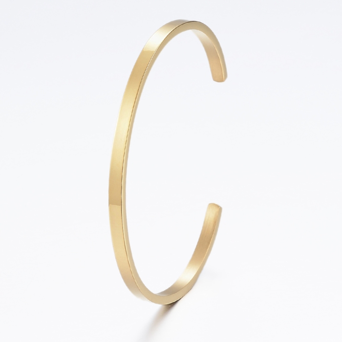 Браслет -манжет из нержавеющей стали 304, Цвет: Золото, Размер: Внутренний диаметр 61x51мм, Ширина 3мм, Толщина 2мм,