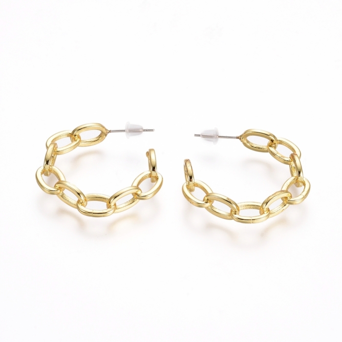 Серьги Пусеты, Латунь, Цепь, Кольца, Цвет: Золото, Заглушка пластик, Пин из Стерлингового Серебра, Размер: 30x6мм, Штифт 0.7мм, (УТ100022334) - ᐈ заказывайте в Москве оптом и в розницу ✅Скидки ✅Акции ✅Распродажи ᐈ доставка по всей России ᐈ Интернет-магазин Мир Бусин