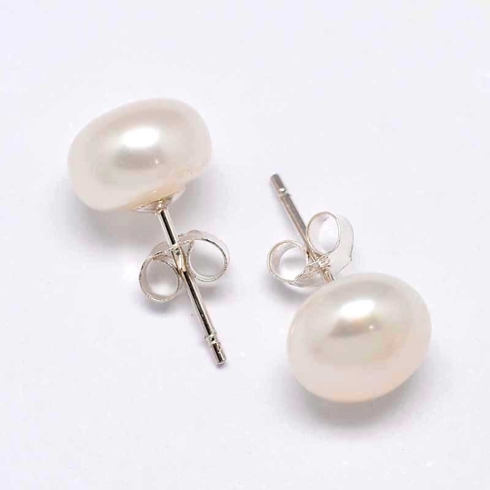 Серьги-гвоздики выполнены из Стерлингового Серебра, с натуральной Жемчужиной, Размер: 10х7мм, Штифт: 0.7мм