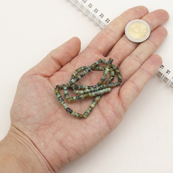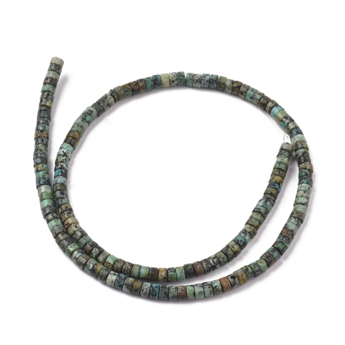 Бусины Натуральная Африканская Бирюза, на нитях, Круглые-Плоские, Цвет: Коричнево-зеленый, Размер: 4х2мм, Отверстие 0.7мм, около 146шт/37см/нить, (УТ100022639) - ᐈ заказывайте в Москве оптом и в розницу ✅Скидки ✅Акции ✅Распродажи ᐈ доставка по всей России ᐈ Интернет-магазин Мир Бусин