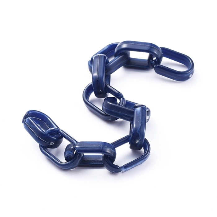 Цепь Акриловая Ручной Работы, Овал, Плетение Якорное, Имитация Натурального Камня, Цвет: Темно-синий, Звено: 18.5x11.5x4.5мм, 1м/нить, (УТ100023660)