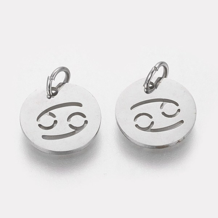Подвеска, 304 Нержавеющая Сталь, Круглая Плоская, Знак Созвездия/Зодиака Рак, Цвет: Нержавеющая Сталь, Размер: 12х1мм, Отверстие 3мм, (УТ100023770)