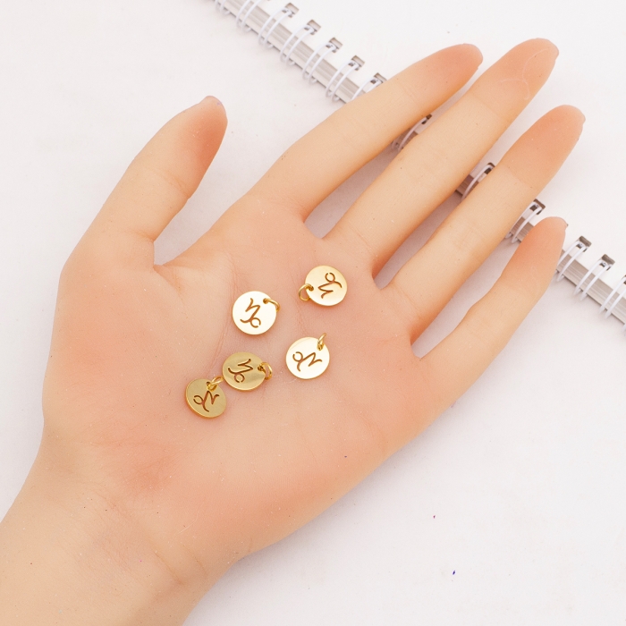 Круглая плоская подвеска из нержавеющей стали с гравировкой знака созвездия или зодиака — стильный и долговечный элемент для украшений. Гипоаллергенная сталь устойчива к коррозии, не темнеет со временем и сохраняет блеск даже при ежедневном ношении. Подвеска отлично подходит для создания браслетов, колье, брелоков и серёжек, добавляя изделиям индивидуальность и символику, подчёркивая характер владельца. Такой кулон станет прекрасным подарком для тех, кто ценит персонализированные украшения. Легко сочетается с цепочками, кожаными шнурами и бусинами, гармонично вписываясь в любые стили — от классики до минимализма.