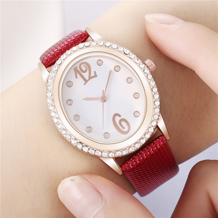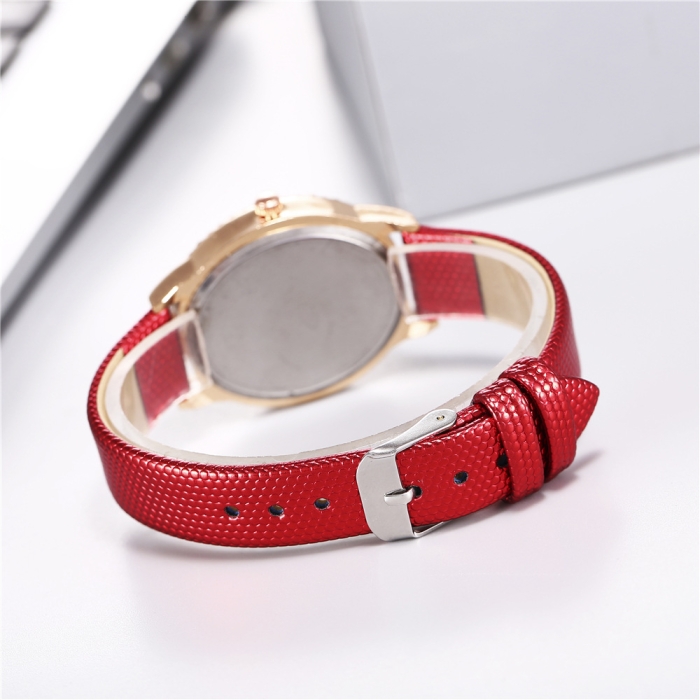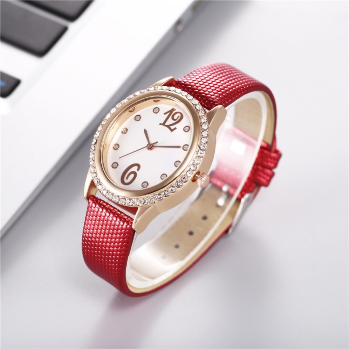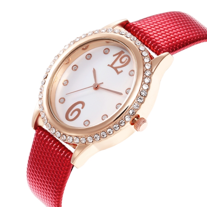 Часы Женские из Сплава со Стразами, Кварцевые, Ремешок из Кожзама, Цвет: Красный, Размер: 33x37x10мм, Длина 24см, (УТ100023808)