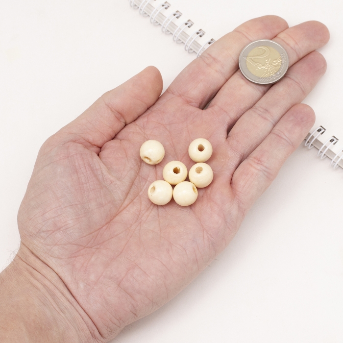 Бусины деревянные, окрашенные, круглые, бежевый цвет.