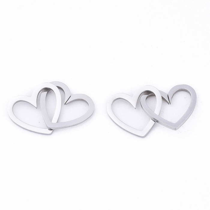 Коннектор Сердце из Нержавеющей Стали, Лазерная резка, Цвет: Сталь, Размер: 11x12x1мм, Внутренний диаметр 5х10мм, ок.2шт/комплект, (УТ100025174)