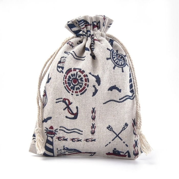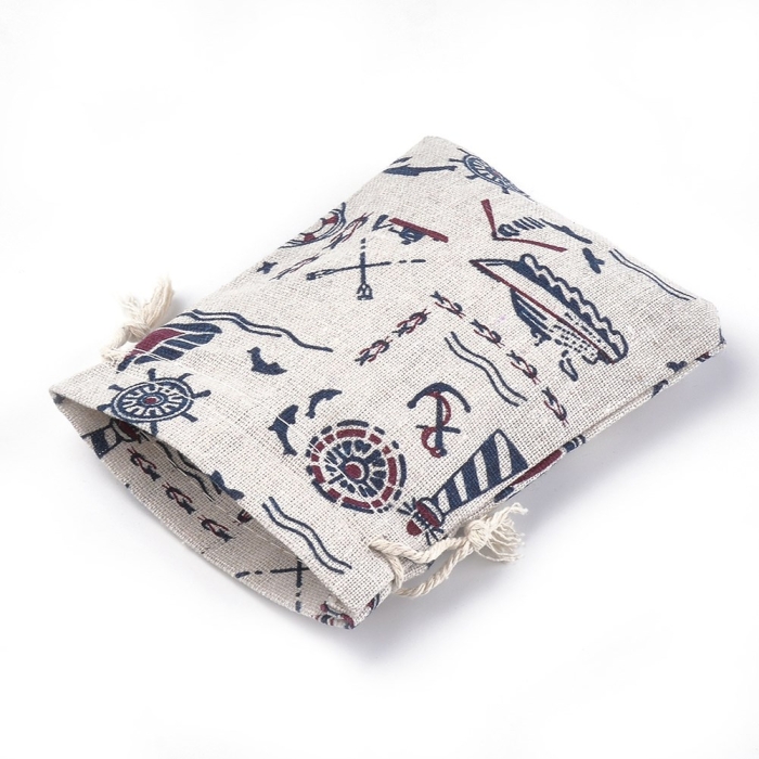 Мешочек упаковочный из поликоттона, с принтом на морскую тему. С кулиской