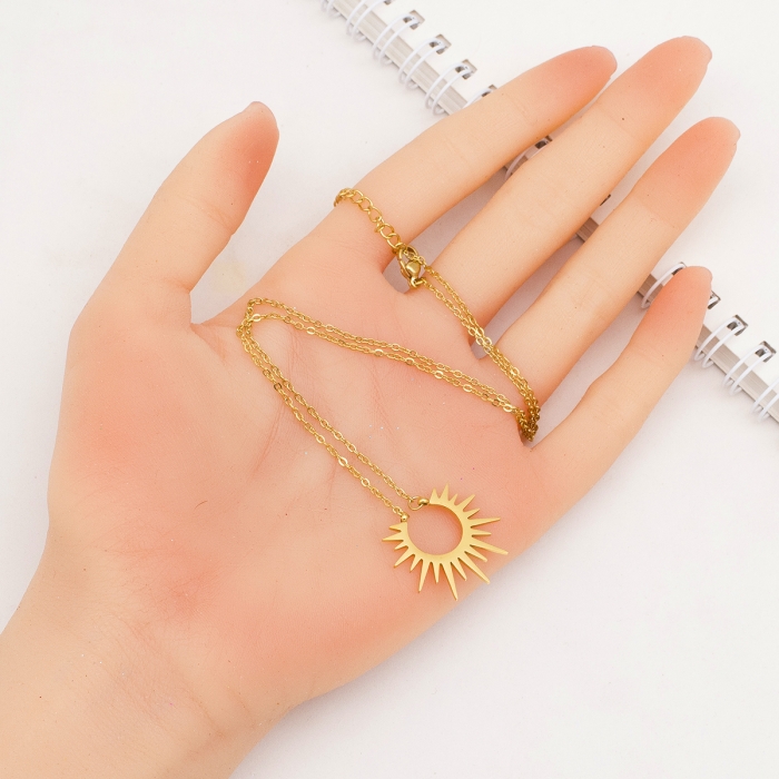 Ожерелье Цепочка из Нержавеющей Стали с Кулоном Солнце, Ионнное Покрытие Золото 18К, 46см, (УТ100025540) - ᐈ заказывайте в Москве оптом и в розницу ✅Скидки ✅Акции ✅Распродажи ᐈ доставка по всей России ᐈ Интернет-магазин Мир Бусин