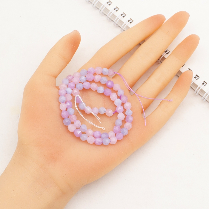 Бусины Натуральный Аметист Круглые Граненые, 6мм, Отверстие 1мм, около 30шт/19см/нить, (УТ100025529)