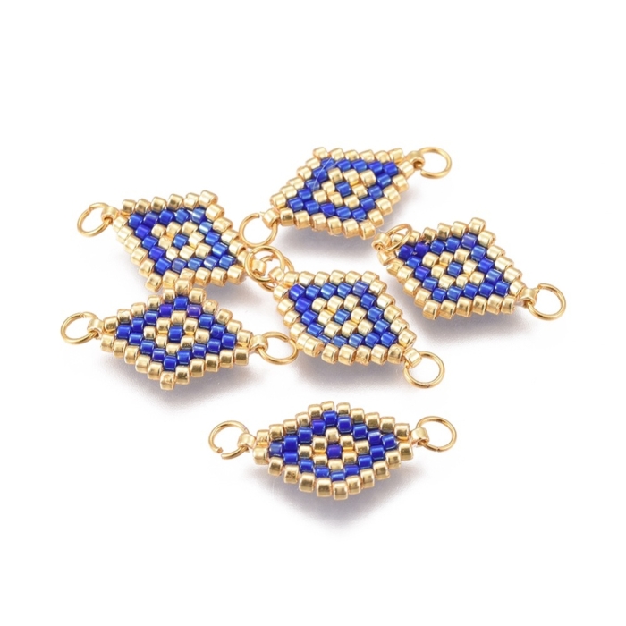MIYUKI TOHO Японский Бисер Коннектор, Ручная Работа, Ромб, Цвет: Синий, Размер: 18х12-12.5х1.8мм, Отв-тие 2.5мм, Кольцо 4х0.6мм, (УТ100026522) - ᐈ заказывайте в Москве оптом и в розницу ✅Скидки ✅Акции ✅Распродажи ᐈ доставка по всей России ᐈ Интернет-магазин Мир Бусин
