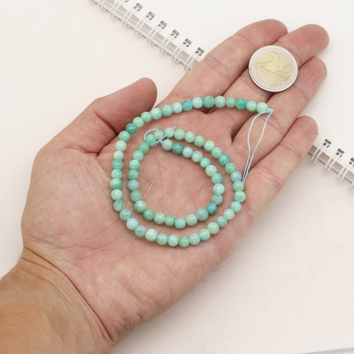 Эти бусины из перуанского амазонита круглой формы обладают насыщенным зелёным оттенком и естественным блеском. Амазонит известен своими успокаивающими цветами и природной красотой, что делает его отличным выбором для создания стильных и натуральных украшений.